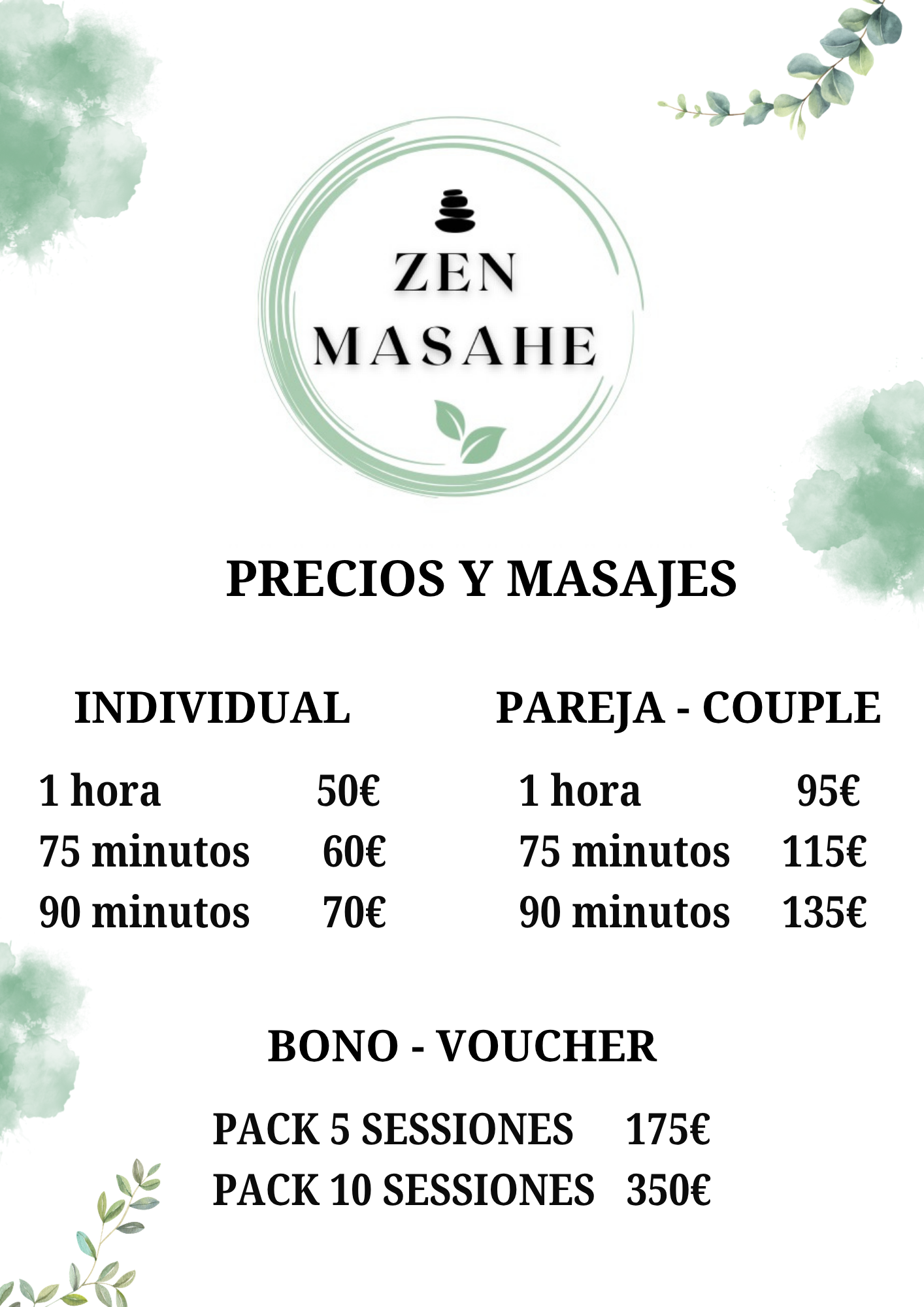 Los precios son aplicables a todo tipo de masajes.